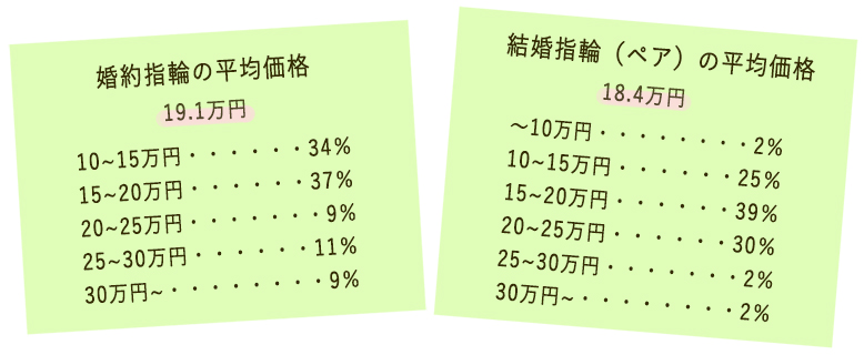 2017年は婚約指輪は19.7万円、結婚指輪(ペア)が18.0万円でした。