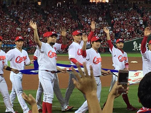 チャンピオンフラッグを持って、選手たちがグラウンドを一周してくれました。