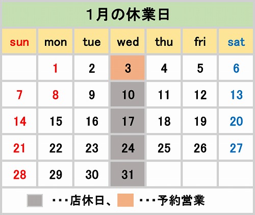 また1月3日は、ご予約いただいた場合のみ営業とさせていただこうと思います。