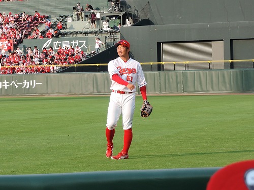 誠也はカープ女子から黄色い声援がたくさん飛んでいました。