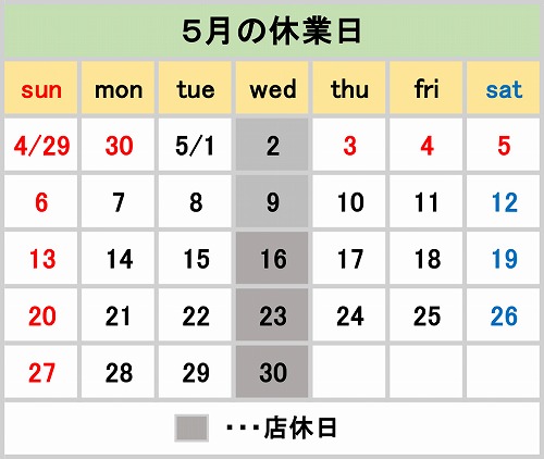 もし5/2の水曜日にご来店を希望される方がいらっしゃいましたら、